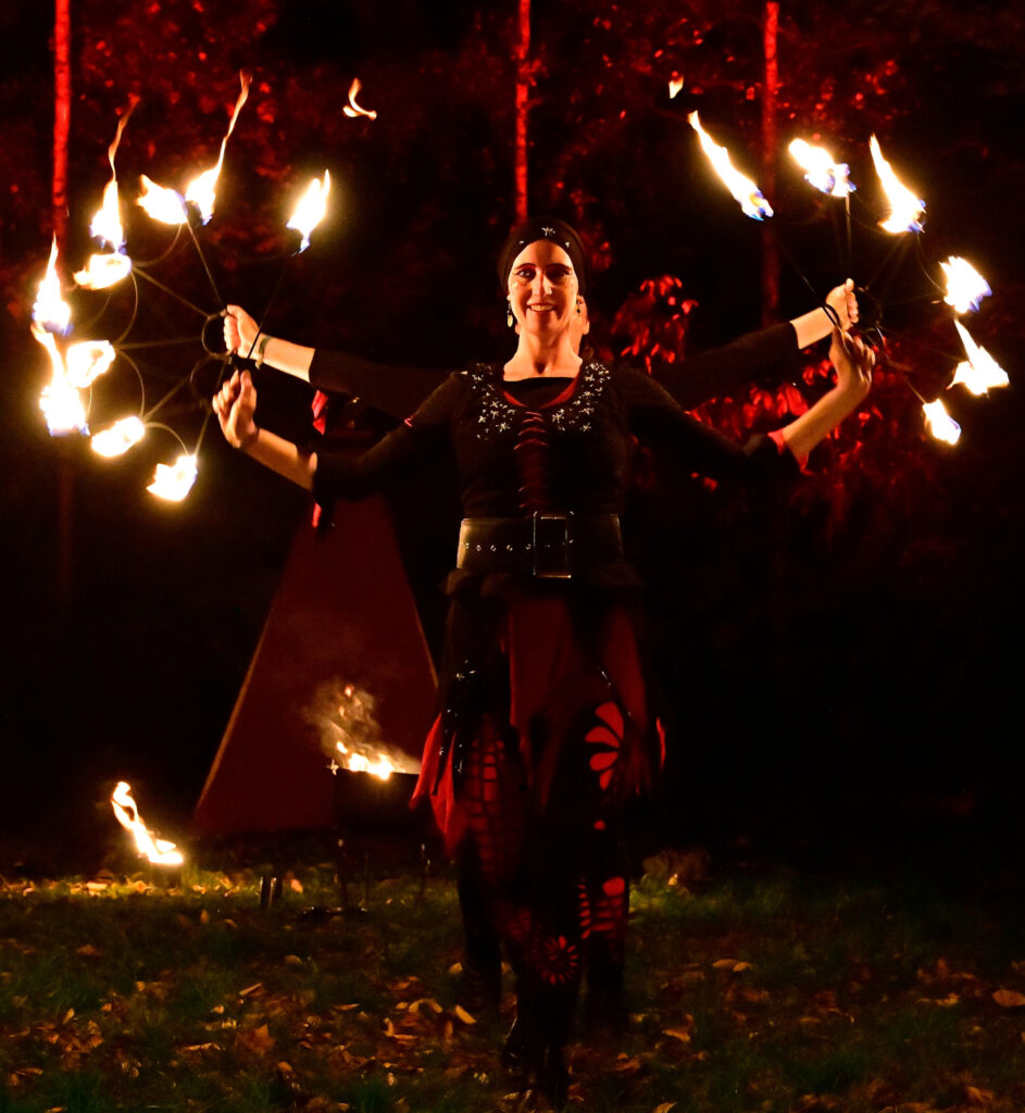 Sanft erwecken sie die zarten Flammen zum Leben und tragen ihr Licht zu den Menschen. Doch es dauert nicht lange, bis sie ihren Hexenkessel zum Brodeln bringen: Verzauberte Feuerbälle wirbeln rhythmisch durch die Luft, brennende Stäbe und Reifen scheinen magnetisch um ihre Körper zu tanzen.